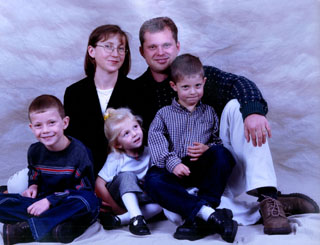 tak jsme loni touto dobou téměř slibovali, že příští Vánoce budeme slavit zase ve Státech. A jak jste si mohli všimnout zpáteční adresy na obálce, nestalo se tak. Důvodem není kouzelná kanadská zima a nebo naše láska k francouzštině, ale zkrátka jen to, že Pavel nechce opustit slibně se vyvíjející projekt. Takže jaký byl nás rok v Kanadě? Začneme pozitivním konstatováním, že jsme přežili zimu! Naše první kanadská zima nás poučila v mnohem - jakou může mít člověk radost z maličkosti - třeba to, že se mu po dvou dnech podaří vytáhnout auto že závěje. Nebo když se po několika týdnech velikých mrazu oteplí na - 18! A taky jak se asi spí tučňákům (naše ložnice se na čtyři měsíce proměnila v lednici). Takže když nám pak 15.dubna napadlo půl metrů čerstvého sněhu, už jsme se tomu jenom smáli. V květnu jsme začali s cestováním do teplejších krajů. Jeli jsme navštívit známé v okolí Washingtonu. Bylo to krásné shledání s přáteli a se známými místy. Byl to silný zážitek nejen pro nás dva, ale i pro oba kluky. Není nic hezčího, než přijít na místo a říci si společně:"A vzpomínáte si, jak jsme tady.....?" A pak jsme letěli do Čech. Opět to bylo jen ve složení děti s Katkou, to už je takový úděl tatínků, že musejí pracovat a pracovat a pracovat.... Všichni příbuzní si asi myslí, že neumíme naše děti pořádně rozmazlit, takže to dělají každé léto za nás. A to důkladně! Užili jsme si dobrot a výletu a lenošení ..... a taky tepla! Vzpomínáte si ještě na důvod naší loňské návštěvy Čech? Svatba Katčina bratra. Tak letos byl důvod stejný (jen jiný bratr!). A den před svatbou přiletěl z Montrealu i Pavel. Takže babička s dědečkem v Chýnově měli zase po dlouhé době celou rodinu pohromadě. Cestovali jsme pak společně navštívit babičku a dědečka do Hradce a spolu s nimi jsme strávili krásnou dovolenou v Krkonoších (tam by ta věta o příjemném rozmazlování mohla platit dvojnásobně). V červenci jsme se vrátili domů a uvěřili, že i v Kanadě existuje léto. V těch několika málo letních dnech jsme se pokusili procestovat okolí Montrealu a i kousek dále, milovníkům hor a jezer můžeme doporučit stát Vermont, tam je spousta krásných míst, do kterých se snadno zamilujete. A pak nám v srpnu začal nový školní rok a z Honzíka se stal "školák domácí", jak to hezky charakterizoval dědeček z Hradce. Už před několika lety jsme se rozhodli pro školu doma a strávili dost času přípravou. Teď po prvním pololetí první třídy to vypadá, že jsme se rozhodli správně. Vidíme v domácí škole více výhod než nevýhod a to speciálně v naší situaci. A vlastně z některých nevýhod se staly výhody - Matýsek žárlil na Honzu a chtěl se taky učit, takže teď umí číst. A Terezka, která tráví většinu vyučování Katce na klíně s pastelkami v ruce, Vám na jakýkoliv příklad z matematiky bez zaváhání odpoví "devět" a nebo "čtrnáct" (to jsou její oblíbená čísla). Nezanedbáváme ani mimoškolní činnost. Kluci mají každý týden kurz plavání a tělocvik s ostatními dětmi, program s pohádkami a výtvarnou výchovou v místní knihovně a Honzík začal skautovat (vlastně "bobrovat" - mladší skauti mají označení bobři). A stíháme i spoustu jiných věcí. Jen musíme prozradit další nevýhodu domácí školy - jestli se chystáte nás navštívit, tak se prosím ozvěte předem, abychom stačili vytřít prach za skříněmi. Veliké úklidy se totiž odkládají na prázdniny.... Matýsek odmalička miloval zvířata, letos se jeho láska soutředila na dinosaury (babička z Hradce si myslí, že to má v genech po Pavlovi). Takže si vybírá knížky o dinosaurech, s plastikovými dinosaury se koupě ve vaně a obtiskává si je do modelíny, aby získal "zkameněliny". V létě si je nosil do parku a hrál si na archeologa. Bylo to docela umění najít zase všechny dinosaury, když byl čas jít domů a Matýsek zapomněl, kde je zakopal. Všichni jsme měli pokaždé co dělat. Mysleli jsme si, že nám z Terezky roste kluk, protože ve všem věrně kopíruje svoje bratry. A tak se ji alespoň snažíme oblékat jako holku; když už běhá po zahradě s klackem v ruce a huláká nebo když parkuje auta, tak ať je alespoň k rozeznání. Teď se nám na zahradě bělá sníh a naměřená teplota je opět dvojciferná se znaménkem minus a my se uklidňujeme, že když jsme přečkali jednu zimu, přečkáme i druhou. Drsné počasí prý navíc tuží charakter. Pavlovou oblíbenou hrou je vyhledávání předpovědi počasí pro město Žlutý Nůž na samém severu Kanady. Člověka nezahřeje něco tak jako skutečnost, že je někde ještě mnohem větší zima. Když to ale vezmeme z vážnějšího konce, trošku toho nepohodlí donutí člověka k zamyšlení o tom, v jakém relativním přepychu teď žijeme ve srovnání se stovkami generaci našich předků, a jak jsme zhýčkaní. Vzpomínáme na Vás všechny, na Ty z Vás, které jsme stihli navštívit a i na ty z Vás, se kterými se setkání různých důvodů nepodařilo uskutečnit. Při našem stěhovavém způsobu života se nás lidé často ptají, kde jsme vlastně doma - v Čechách, ve Státech, v Kanadě, nikde? Odpověď na to je jasná, doma jsme tam, kde je nás pět pohromadě, kde ukládáme Honzu ke spaní s jeho sny o autech, basketbalové kariéře a kempování se skauty, Matýska do jeho postele přeplněné desítkami plyšových zvířat a Terezku s jejím nepostradatelným medvídkem. Ale myslíme si, že přece jen jsme jednou nohou ve Státech, protože tam se narodily naše děti a tam jsme prožili hezkých pět let. A jednou nohou jsme taky v Čechách. A když ne jednou nohou, tak kouskem srdce určitě. Právě kvůli Vám v