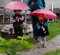 Když jsem tuhle předeštníkovanou historku líčila Jakubovi, začal se chechtat (přesto, že částečně původcem "neštěstí")a povídá."To bude bomba, každá v každé ruce deštník a na sobě novou pláštěnku. To abychom chodili ven jenom když bude pršet, přece to všechno musíme nějak využít, ne?" A mně z toho začalo tak nějak divně mrazit kolem žaludku - ostatně kočár, Laďka, holčiny, pláštěnky, deštníčky, bez výtahu, do našeho patra,... Proč myslet na nejhorší.