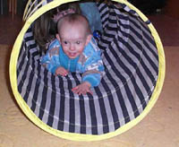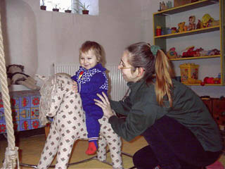 A protože ve dvoře mají nejenom zvířátka, ale i hernu, tak jsme se šli do tepla najíst a trochu si pohrát. V herně jsme byli sami, i když jindy v ní bývají i jiné děti. Mají v ní spoustu hraček, taky houpačku, houpací koně, tunel, který máme i na cvičení a který nemám ráda, lano...