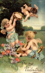 K jeho symbolům patří sladkosti, srdce, rudé k polibku nastavené rty a CHERUBIN CUPID. Odborníci a znalci "andelologie" (úkolů, které andělům náležejí) ať se nediví. V Evropě úkol střílet šípy lásky do srdci zamilovaných náleží pohanskému bohů Amorovi (synovi už zmiňované bohyně JUNO). Který tak činí v průběhu celého roku. To ale přece nejde na Sv. Valentýna (nějaký pohanský bůžek): V Americe na Sv. Valentýnka lítá CHERUBIN CUPID tedy křesťanské stvoření.