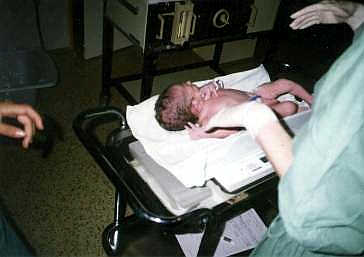 Letošní velikonoce (od 3.4 do 5.4.) jsme netrávili jako obvykle s kamarády na chatě, ale kdekoliv jinde hlavně blízko porodnice. Naše miminko se mělo narodit každou chvíli. Termín mělo 30.3.99. Nakonec jsme si užili skoro celý víkend s bříškem, teda spíš břichem. V pondělí večer to ale mimíska v bříšku (takhle mu to v bříšku slušelo) přestalo bavit a tak to ještě do půlnoci stihnul. Bylo to však „o fous“ a proto má Martínek zápis - narozen 5.4. ve 24:00.