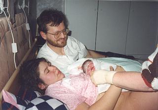 V pátek 26.3. 1999 mi odtekla plodová voda a čekala jsem na porodní bábu a na kontrakce. Bába přišla kolem sedmé večer, ale kontrakcí jsem se stále nedočkala. Protože mi už odtekla plodová voda, nepodívala se, nakolik jsem otevřená. Dostala jsem instrukce, co dělat, kdyby kontrakce nepřišly a kdy ji máme volat, kdyby se objevily. Kontrakce přišly nakonec velice rychle a okolo deváté už byla moje bolest silná. Volali jsme bábu. Po zkušenostech, že první porody trvají 12 - 16 hodin nepospíchala a dorazila k nám až pár minut po desáté. Já už tehdy potřebovala tlačit a neuměla jsem si představit, jak pojedu do nemocnice a jak takové bolesti dalších deset hodin vydržím. Překvapení asistentky bylo asi velké, když zjistila, v jakém stadiu porod je. Předtím se samozřejmě nezapomněla zeptat, zda nás půjde do porodnice všech šest - já s manželem, moji rodiče a manželovi rodiče. Řekla nám, že děťátku se chce na svět, že je komplikované jet do nemocnice, abychom zůstali doma, že ona to zvládne. S úlevou jsem přijala její návrh a ani mě nenapadlo myslet na komplikace. Bába si zavolala sestřičku, sehnala všechno, co jsme měli mít a neměli jsme a přitom nám pomohla porodit naší Silvinku, kterou jsem si já mohla na konci sama vytáhnout. O všechen pořádek se postarala sestřička, která bábě pomáhala, takže my se mohli těšit z našeho miminka zrovna tak, jako kdybychom byli v nemocnici. Porod doma je krásný a o nic víc náročný než v nemocnici. Jste s těmi, které máte rádi a po dobu prvních slabých kontrakcí ležíte ve své posteli nebo opouštíte hudbu, na kterou máte chuť a nemusíte myslet nato, jestli je všechno do porodnice a zabalené a jestli byste už neměli jít. Celé moje těhotenství, návštěvy u báby i samotný porod byly klidné a bez stresu.