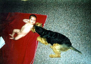 Jelikož má Martínek psího kamaráda, jezdíme pravidelně ven, vždy ráno na hodinu a odpoledne na dvě až tři hodiny. Jezdíme za každého počasí, skoro vždy do lesa, protože máme teriéra, a ten by procházky po sídlišti asi neakceptoval. Z Martínka domácí pecivál určitě nebude. Pokud chceme vyrazit do terénu pro kočár nepřístupného (a těch je víc než dost) nosí se Martin v klokance. Někdy v ní pobrekává, ale většinou je spokojený. Zvlášť u mámy, kdy cítí blízkost jídla a asi se mu taky mezi „airbagy“ sedí mnohem pohodlněji než u táty.
