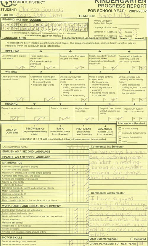Clarisska se naučila za tenhle rok číst. Na jejím vysvědčení můžete velmi podrobně vidět, co už umí v matematice, jak šikovná je školačka. Kdyby se dávalo vysvědčení rodičům pomocníkům, také na tom mém by byl vidět mnohý pokrok. V angličtině, ve výchovných metodách (naučila jsem se mnohému triků od naší paní učitelky), v chápání dětské duše. Nejen mého dítěte, ale i těch druhých. Taky jsem se s dětmi naučila počítat španělský do deseti a jak se řekne tatínek, maminka a děti posunkovou řeči. To byly speciality naší paní učitelky. A abych vám pravdu řekla, už se těším na příští školní rok, co na nás na obě čeká nového v opravdové první třídě…