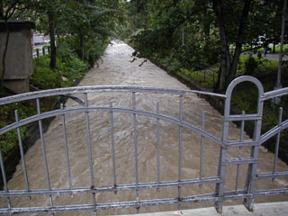 Co se však mému mateřskému oku nelíbilo vůbec byl pohled z našeho pražského okna. Místní potůček nesoucí název Botič, který se jindy sotva plazí svým "naddimenzovaným" korytem, který je cítit do daleka, protože jeho průtok předčí i kapající kohoutek u nás v koupelně, se změnil. Najednou jsme pod oknem neměli jen tak nějaký čůrek vody, ale pořádnou šedohnědou valící se řeku, která s každou hodinou stoupala. Úměrně tomu vzrůstala má nervozita a já bláhová zapnula televizi. To jsem asi neměla dělat, ale to už tak někdy bývá.