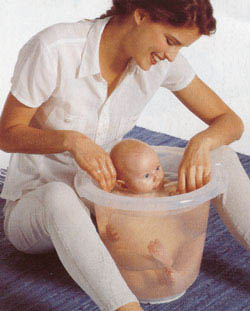 Nelze jednoznačně říci, co je lepší – kyblík, nebo vanička? Nechte dítě, aby si vybralo samo. Mnohé porodnice dnes již mají nejen vaničky, ale i kyblíky. Vyzkoušejte a rozhodněte se. Jsou i mateřská centra, která kyblíčky půjčují nebo vám v něm alespoň ukázkové koupání s výkladem ve vaší domácnosti předvedou.