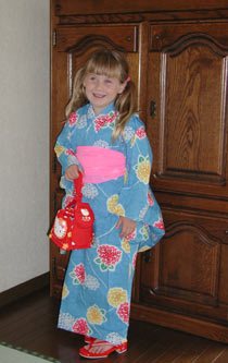 Pomáhá mi teď krásné servírovat jídlo a má nápady, které pochytila v Japonsku, kde jídlo je umělecký obřad. Vypráví všem o kouzelné hoře Fudži a ukazuje vulkanické kameny, které si přivezla. Umí udělat origami, ještě nezapomněla, jak se japonsky poděkuje a umí se při tom pěkně uklonit. Všechny její kamarádky se při hraní na převlékání dohadují o kimono, které si z Japonska přivezla. Nejvíc obdivují botičky a kabelku, která má i pro tak malá děvčátka kapsičku pro mobilní telefon (Clarisska už si do ní jeden dala. Vysloužený od našich sousedů). Vzpomíná, jak jsme jeli nejrychlejším výtahem na světě a hraje si se Sinkansenem. Pozná Buddhu meditujícího i žehnajícího a miluje zmrzlinu z červených fazolí a zeleného čaje… I my jsme hodně věci viděli jinak, než bychom je viděli bez ní. Víme víc o opravdovém japonském všedním životě, o tom čím žijí japonské děti a rodiny a chceme se tam všichni ještě někdy vrátit…