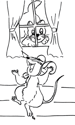 | od té doby po světnici, hledá myšku tanečnici. |