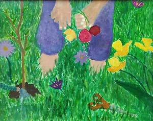 Většina malých dětí rada něco tvoří. Malují nebo vytvářejí objekty ať už z plastelíny nebo jiného materiálu. Připravte jim někde v zahrádce umělecký koutek, kde mohou tvořit, zatímco vy pracujete na zahrádce. Mohou malovat květiny, které vidí na zahrádce, nebo které by chtěly mít, či nejaké "zátiší". Nechte je malovat na prázdné pytlíky od semínek, nebo malé kartičky, které potom upevníte na malé tyčky k označení rostlin na zahrádce.