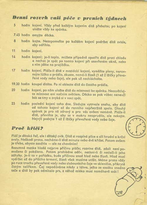 Snaha o sterilitu porodnic a preference matčina zotavování nebyla tenkrát žádná zlomyslnost odborníků, ale jejich snaha zachránit životy matek a dětí. Podívejte se na čísla kolik matek a dětí umíralo při porodu ještě počátkem 50. let. Kojení se v Čechách podporovalo vždycky. I v těch "nejstrašnějších" knihách, kde se kojení v noci považuje za rozmazlovaní, se mluví o kojení jako o nejlepší možné výživě pro dítě. A učili nás to v nemocnici. Měli na to týden času. Jen prostě bylo najednou možné s výmyslem sušeného mléka nekojit. I pro obyčejné ženy. Mnohé ženy "z lepších kruhů" nekojily už v renesanci, aby si uchovaly krásu. Měly na to kojné. V poválečných letech se ještě odstříkané mléko mohlo odevzdávat pro děti, jejichž matky kojit nemohly.