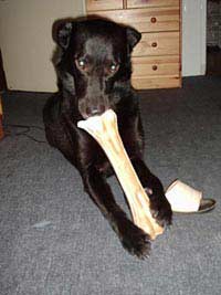 Psům se do domů ani nechce. Jen díky tomu, že jsou oba černí, není vidět, jak jsou zahumusení, takže jako největší čuně vypadám pravidelně já, protože na tříkole to samosebou pěkně cáká. Před domem odmontovávám tažné šňůry, vypřahám psy a čeká mě první akrobatický kousek: procpat tříkolu dveřmi do domu, dveře samozřejmě nejsou dostatečně široké, a na bok ji do domu taky nedostanu, protože mi zase překážejí řidítka. Pokud jste četli Záhadu hlavolamu, vzpomeňte si na návod, jak dostat ježka z klece. Je to něco na způsob "natočte ježka tak, aby nejdelším svým ostnem vyčníval z nejširšího otvoru klece. Pak s ním za pomalého otáčení posuňte do dvou třetin výšky otvoru…." atd. Není to přesná citace, ale je to velice podobný postup mého soukání tříkoly do domu. Následuje pěkný sešup po schodech do sklepa, na schody se tříkola na šířku vejde jen taktak. Zatímco já se jí snažím hrkat ze schodů pokud možno pomalu, psi kolem mě běhají nahoru a dolů, samozřejmě prolézají přes tříkolu kudy to jen jde a zjevně se velice dobře baví. Ve sklepě následuje další krkolomné procpávání tříkoly za střídavého rozsvícení světla (u nás v domě totiž ve sklepě svítí jedna slabá žárovka a jako v celém domě i zde má interval jen pár vteřin, než znovu zhasne).