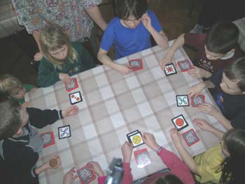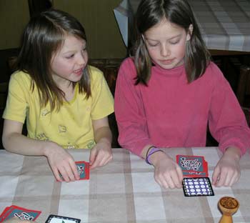 Ti postupně vykládají na stůl ze své zakryté hromádky po jedné kartě. Pokud se na stole objeví dvě karty se stejným symbolem, snaží se jejich majitelé co nejdříve ukořistit dřevěnou kuželku. Ten, kterému se to podaří nejdříve, dá své vyložené karty soupeři a ve hře se pokračuje. Všichni se snaží postupně zbavit všech svých karet.