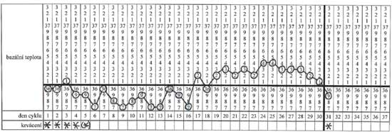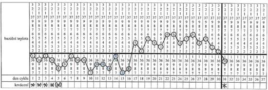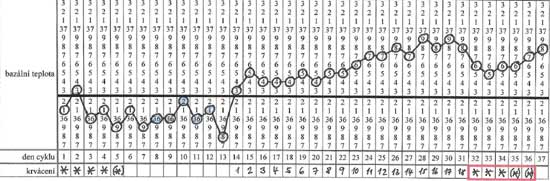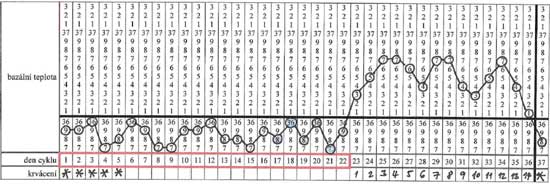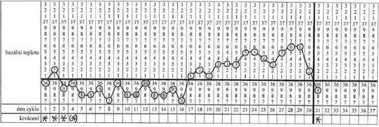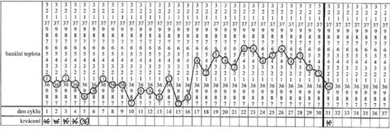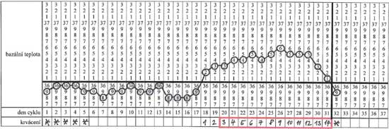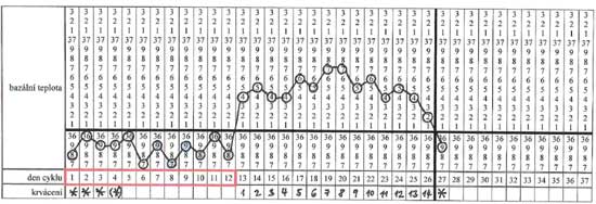 Pravidlo třetího dne vyšších teplot: od večera třetího dne luteální fáze je žena neplodná až do nástupu menstruace.