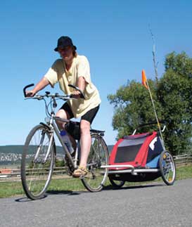 Ale zpět k jízdě na kole. Vyrazíte-li s přívěsným vozíkem, jste celkově delší a musíte na to neustále myslet. Jste také poněkud širší než s cyklosedačkou, proto je lepší vyhnout se úzkým lesním stezičkám.