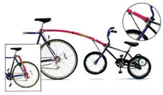 Druhou možností jak převážet starší děti je teleskopická tyč, kterou připojíte běžné dětské kolo bez jakýchkoli úprav. Po připojení je přední kolo dětského bicyklu ve vzduchu a jede tedy pouze po zadním. Připojení je rychlé a není k němu potřeba žádné zvláštní nářadí. To znamená, že v hustém městském provozu můžete vzít dětské kolo do vleku jako přívěs a po vyjetí za město je zase odpojit. Cena je navíc nižší a není třeba kupovat speciální přívěs, ale pouze spojovací tyč. Jízda s takovým závěsem je o něco vratší než s půlkolem, paleta možného využití je ale širší. K vidění bývá také jakýsi kovový koš upevněný na zadní vidlici a ose zadního náboje, do něhož se přední kolo dětského kola zasadí. Je to velmi mobilní, operativní, avšak vhodné spíše k náhlým krátkým přesunům. Třeba při průjezdu frekventovanou čtvrtí nebo křižovatkou. Dítě pak v mžiku zase jede samo.