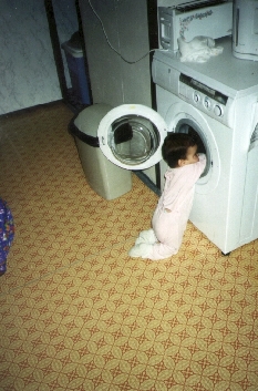 Pračka je vhodný objekt. Jednak má skleněná kulatá dvířka, která se dají otvírat a zavírat a jednak je to uvnitř takové lesklé, a tak jednou strčil Martin dovnitř i hlavu. Varik, když to viděl, honem se taky musel podívat, takže rázem byly v pračce hlavy dvě.