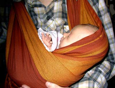 Vrátila jsem se z porodnice a snad poprvé v životě nahlédla do návodu. Poté, co jsem kolem sebe omotala nekonečné metry látky a pokusila se do nich vpravit ten můj, zatím dvoukilový, vřeštící balíček a chvíli s ním chodit po bytě, mě nadšení jaksi... opustilo. Byla jsem v pokušení odhodit šátek v dál. Jenže... těch peněz...