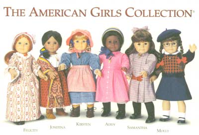 Pak už jen stačilo vytvořit ke každému příběhu panenku a potřebné doplňky, aby si s nimi holčičky mohly hrát. Dneska firma nabízí historických panenek sedm: FILICITY z roku 1774, KAYA z roku 1767, JOSEFINA 18, ADDY z let Občanské války 1867, SAMANTHA 1904, KIT 1938 A MOLLY z roku 1944. Jak už to v Americe jinak nejde, je jedna z nich , KAYA, indiánská holčička. ADDY je černošská holčička z doby Občanské války a JOSEFINA je vlastně Mexičanka…Zatím nikdo nezpracoval příběh čínské nebo jiné asijské dívky.
