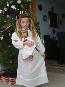 Jak dokonalá je dobová iluse, jste mohli vidět na fotkách z Vánoc letos i minulý rok. Když se Clarisska převlékla za Kirsten v oblečení jako Lucie. Všechny švédské maminky ve švédském domě v Balboa parku se nás ptaly, odkud, že máme ten krásný věnec a oblečení...a měly nás za Švédky…