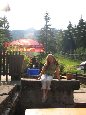 A co teprve jídelníček pro děti! Mají celou řadu oblíbených dětských jídel (špagety, omáčky, brambůrky a ovocné knedlíky, palačinky). A jak nádherně je servírují!. Myslím, že by jej mohli závidět i němečtí sousedé, od kterých se to na severu Čech naučili, o Američanech ani nemluvě (jídla pro děti jsou v každé restauraci, ale téměř všude na jedno kopyto). Servírka se vesele smála, když jí děti běhaly do cesty, vyhověla "vymejšlení" o barvách brček. Zkrátka poměli jsme se tam.