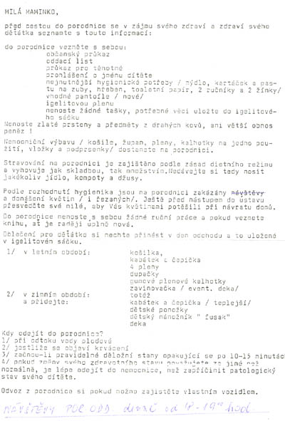 Čáslav - co s sebou do porodnice