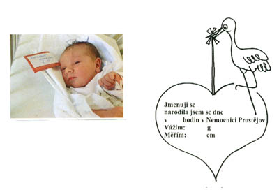 Prostějov - oznámení o narození miminka