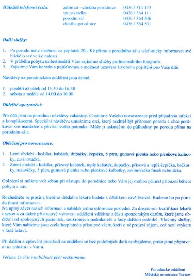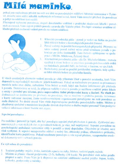 Turnov - co s sebou do porodnice