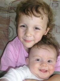 A pak nastal obrat o 180 stupňů. S péčí o Michalku mi pomáhala od počátku s nadšením. Nikdy sestřičce vědomě neublížila. Jen jednou škobrtla a přitlačila Michalce hlavu knížkou do gauče. Míša se uklidnila hned, protože se vlastně jenom lekla, ale Terku jsme museli málem křísit. Uklidňovala jsem ji, že se nic nestalo. Bylo u toho moje babička, která mi vyčetla, že ji snad ještě pochválím…. Odpověděla jsem, že proč ji mám stresovat, když to neudělala schválně, navíc se to může stát každému. Nikdy jsem se nebála mazlit se s Míšou, která je od prvního dne na rozdíl od Terezky "mamánek". Vše nám doma šlape. Michalka cítí, že ji Terezka zbožňuje, jejich láska je vzájemná. Nikdo si k malé nemůže dovolit tolik co starší dcerka. Jednou na mě volala: "Mami, pojď se podívat, co dělám s Michalkou". Jdu tam a vidím, jak ji zvedá za límeček od košilky asi 15 cm nad postýlku. Zastavilo se mi srdce, Michale padala hlava dozadu, ale řehtala se jak pominutá. Vysvětlila jsem Terezce, že Míša je ještě křehká a nedrží hlavičku, asi to pochopila, protože tak o měsíc později jsem slyšela z pokojíčku smích těch mých dvou koťat, tajně se jdu podívat, a co nevidím…. Terezka drží Míšu za dupačky a mává s ní po postýlce, ovšem hlavičku jí nezvedá…………