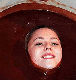 Hodně by vám o tom mohli vyprávět v čokoládových lázních v holelu HERSHEY... (V Hershey - hlavním městě americké čokolády v Pensylvanii). Můžete se tam ponořit do čokoládové lázně, nechat si ošetřit nohy nebo celé tělo v čokoládovém fondue (variace na bahenní zábal) nebo si nechat udělat čokoládovou a cukrovou kosmetiku, nebo jen dýchat čokoládovou vůni... A při tom můžete neomezně mlsat čokoládové "polibky" (jedna z oblíbených amerických čokoládových specialit).