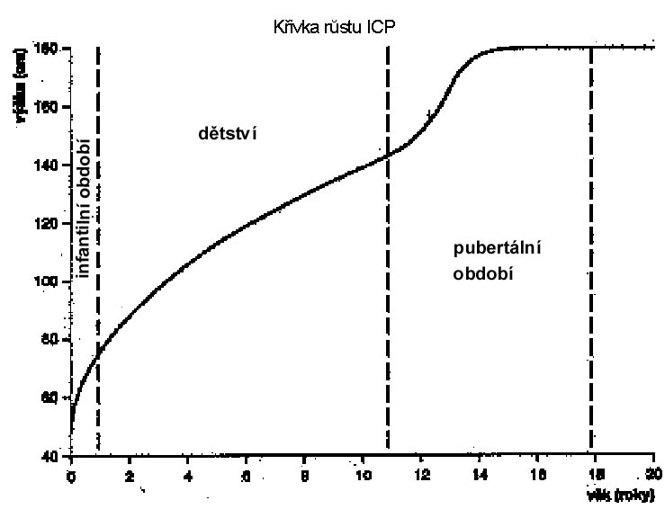 Dětství (Childhood), které lze označit jako hormonálně němé období klidného růstu, obklopují dvě odlišné a sobě podobné etapy růstu – infantilní (Infancy) a pubertální (Puberty). Obě tato období jsou charakteristická výrazným tělesným růstem a podobnou hormonální situací (zvýšené hladiny pohlavních hormonů). Uvedené tři komponenty růstu byly definovány na základě analýzy růstové křivky a charakterizují je specifické hormonální situace rostoucího organismu. Infantilní růstová komponenta I, která je nezávislá na účinku růstového hormonu, se uplatňuje již od druhé poloviny nitroděložního života a představuje příspěvek k růstu lidského plodu po jeho narození. Komponenta růstu C, „dětská“, se začíná uplatňovat u zdravých dětí ještě před ukončením prvního roku života, je spojena především s působením růstového hormonu a trvá s mírně klesajícím tempem až do ukončení tělesného růstu. Pubertální komponenta růstu P představuje fázi přídatného růstu vyvolaného pubertou a významně souvisí s věkem nejvyšší růstové rychlosti. Znalosti zákonitostí růstu podle ICP modelu považujeme za jednu z podmínek kvalitního stanovování růstové diagnózy.