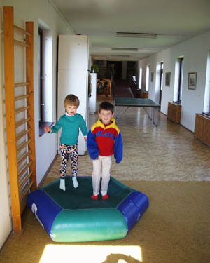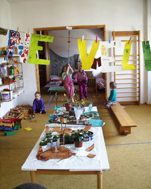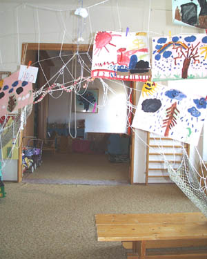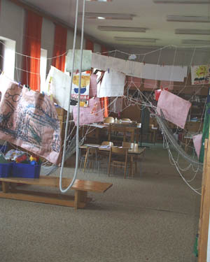 ![]() Pohled do jedné z tříd. Provaz na pohoupání nechybí v žádné třídě. |