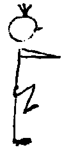 Dítě stojí na jedné dolní končetině, matka je přidržuje za druhé koleno, pomalu vychyluje dítě vpřed a vzad.