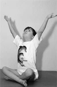 Následuje pomalé vzpřimování trupu do sedu, horní končetiny do vzpažení zevnitř (kytička roste).