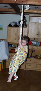Ze staré lípy se pomocí desetimetrového lana na naší chalupě v Jižních Čechách se rázem stala atrakce pro všechny vesnické děti, kratší podoba dobře slouží i v našem malinkém bytě. A poradí si s ním i dvouapůlleté dítě.