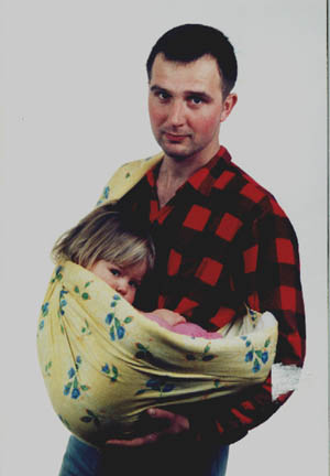Baby vak, vyráběný podle zahraničního vzoru (v Německu přes 100 marek), je sice méně variabilni než zmíněné šátky, ale zase se nemusí nic vázat a miminko v něm rádi nosí i muži, kteří se zpravidla se šátkem necítí dobře.