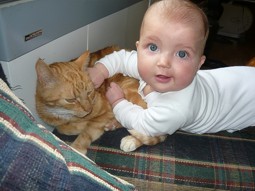 Asi největším strašákem maminek je alergie a epilepsie. Obecně rozšířený názor totiž je, že obé je způsobeno přítomností koček (zvířátek). Já bych na to tedy selským rozumem nazírala obráceně. Dám malý příklad, jak to myslím – i já absolvovala se všemi třemi dětmi nespočet kojeneckých poraden, v prvním roce jsem jezdila k panu doktorovi snad každý měsíc. Občas dostaly očkování nebo přeočkování. Víte, jak funguje očkování? Hezky česky: ve vakcíně je obsaženo trošíčku bacilů a jiných sajrajtů, co způsobují nemoci, proti kterým je dítě očkováno. Jen tak málo, aby si organismus dítěte vytvořil protilátky a až opravdu nemoc udeří, dítě se dovede bránit samo. Může mi teda někdo vysvětlit, jak si má miminko udělat protilátky na alergii, když žije v dezinfikovaných prostorách, pejsků a kočiček se nemůže ani dotknout (nesahej na TO, třeba TO má nějakou nemoc) a každé jablko utržené ze stromu ze zahrádky si musí umýt? V tuhle chvíli je třeba asi říct „méně je někdy více“ nebo snad „všeho moc škodí“? Čili, podle mého (a ehm, jedné studie na internetu) v době, kdy je miminko v bříšku a okolo maminky se ochomejtá jedna nebo dvě kočičky (nebo tři, nebo čtyři :-)), automaticky se vytváří návyk na alergeny, které jsou po narození miminka už neškodné. U nás to tak funguje a jsem za to moc šťastná. Moje známá (nemůže to být kamarádka, nemáme žádné společné zájmy) čeká třetí miminko. V předchozích dvou těhotenstvích byl její nejlepší kámoš akorát tak Bref a z její podlahy by se dalo jíst (bez mučení se přiznám, že tohle u nás opravdu nehrozí :-) Prase ale taky nejsem :-)) Teď se dívá na to, jak si její desetiletý syn docela samozřejmě píchá sám injekce a inhaluje, protože je těžký alergik a astmatik. Jeho starší brácha je na tom lépe, musí jen občas inhalovat. Přesto známé nic nedošlo a třetí těhotenství jede podle stejného scénáře.