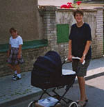 Z porodnice jsme byli propuštěni v pondělí 12.6.2000. Sice bylo ráno chladno a Skoky vzal pro Adámka různé oblečení včetně tenčího pleteného kabátku, ale cestou v autě začal být docela slušný pařák. Být v autě v takovém horku rozhodně není to, co bych vyhledávala s oblibou a ještě s miminkem… A to jsme ještě skrz zacpanou Prahu projížděli minimálně hodinu. Domů jsme dojeli asi za hodinu a půl - přesně tohoto jsem se obávala, pokud by porod začal v období dopravních špiček a my museli jet do Krče takhle zacpanými ulicemi. Při odchodu z porodnice Adam plakal, ale jen co jsme ho posadili do sedačky, tak usnul a spal celou cestu. :-)
