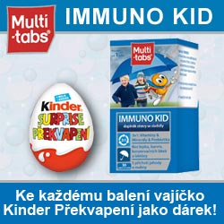 Na zájmových kroužcích, ve školkách a školách se setkává najednou spousta dětí, často více či méně nachlazených. Zvláště v tomto období si tak odtud vaše děťátko může kromě zážitků odnést i pořádnou rýmu nebo kašel. Aby virům a bakteriím odolalo, je pro ně důležitá maximálně silná imunita. Nový Multi-tabs® IMMUNO Kid je multivitaminový přípravek 3 v 1. To znamená, že kromě nejdůležitějších vitaminů a minerálů obsahuje v každé tabletě také 1 miliardu živých probiotických bakterií LGG®. Probiotické bakterie pomáhají účinně posílit imunitu a zároveň podporují správné zažívání a trávení. Multi-tabs® IMMUNO Kid mohou užívat děti již od 1 roku. Doporučená cena je 170 Kč za měsíční balení, což vzhledem k cenám léků na rýmu a kašel určitě není velká investice.