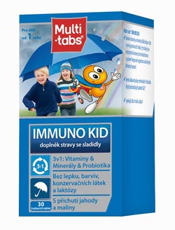 Přípravek Multi-tabs® IMMUNO Kid i další výrobky řady Multi-tabs lze zakoupit v lékárnách a na www.lekarna.cz. Více informací o přípravcích Multi-tabs naleznete na www.multi-tabs.cz.