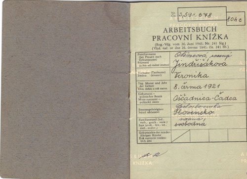 A tak maminka šla. Nejdříve k rodině Kučerů v Hoškovicích, malé vísce u Mnichova Hradiště. Tam jí právě ustlali na té slámě. Uprostřed zimy. V pracovní knížce má napsáno: "krmí, uklízí, ženské práce ve stodole a na poli".
