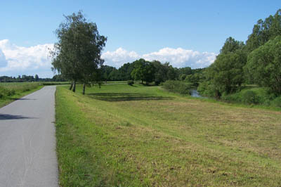 V Německu konečně začíná stezka taková, jakou jsme si představovali. Z valné většiny asfaltová (nebo alespoň uválcovaná zpevněná) cyklostezka nás dál vede krajinou plnou luk a lesů, hory jsou definitivně za námi. Jede se krásně, konečně si jízdu užíváme, není žádný problém. Rovina není nudná, obrázky kolem nás se střídají, stezka se klikatí podél meandrující řeky.