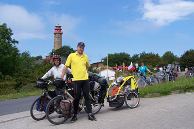 Pobřeží Baltu je lemováno kilometry luxusních hotelů, dávno již máme za zády Ahlbeck, před sebou Peenemünde, někdejší Hitlerovu leteckou základnu. K vidění je toho spousta: muzeum, továrna na rakety s odpalovací rampou, ponorka. Lodí přejíždíme na Rujanu, největší německý ostrov. Spíme jednu noc v kempu, pereme skoro všechno prádlo, co vezeme. Třináctý den nás čeká Kap Arkona, nejvzdálenější místo naší miniexpedice. Foto a pak se otáčíme a jedeme DOMŮ! Možná by se na tomto místě hodilo pronést nějaký proslov, říci pár dojemných slov či uronit slzu. Na to já ale nemám talent. Hlavně by to znamenalo, že máme vše splněno a již nás nečeká nic velkého. Naše cesta ale ještě zdaleka nekončí. A nemá jediného cíle, samotná cesta je totiž cíl. Objíždíme Rujanu a potom se vracíme na pevninu a míříme do Polska.