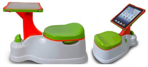 iPotty je přídavné k iPadu pro ty nejmenší uživatele. Jeho hlavním úkolem je udržet je na nočníku co nejdéle. Tomu odpovídá i vybavení - barevný design, odolný kryt displeje i vhodné aplikace.