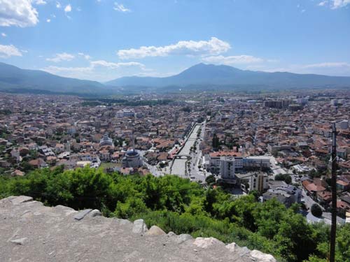 Směřujeme na Prizren, je to asi nejhezčí ze všech kosovských měst. Má zachovalé historické centrum s několika mešitami, kamennými mosty a tureckými lázněmi. S Víťou se šplháme na hrad nad městem, ze kterého už bohužel zůstaly jen kamenné zdi, ale výhled na celé město sevřené horami je úžasný.