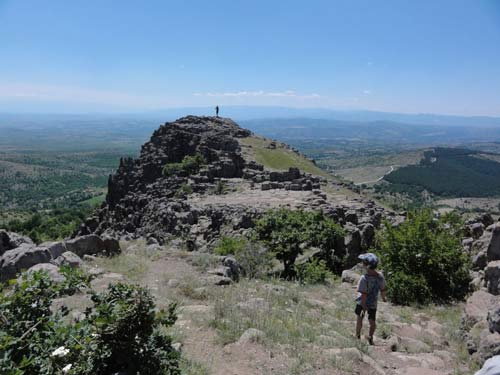 Poslední den v Makedonii se nudit nebudeme - ve vsi Staro Nagoričane míjíme kostel svatého Jiří ve vsi s freskami ze 14. století, ale v plánu máme ještě něco lepšího - na vrcholu kopce v nadmořské výšce nepatrně převyšující 1000 metrů objevili historici teprve před pár lety observatoř z doby 2000 let před naším letopočtem. Makedonské Kokino se významem řadí k takovým památkám, jako je např. Stonehenge, Abú Simbel apod. Vyjížďka na něj ale zadarmo rozhodně není. Asi patnáctikilometrová zajížďka však uspokojí zejména milovníky záhadných míst. Hned zpočátku je jasné, který kopec je ten správný, ale cesta se zdá nekonečná. Asfaltová silnička však vede až těsně pod vrchol, jenom na poslední necelý kilometr odkládáme kola do křoví a jdeme pěšky. I kdyby zde žádná prehistorická observatoř nebyla, výhled je fantastický. Přesto jsem ráda, že máme tenhle kopec za sebou. Loučíme se s Makedonií, po které jsme najeli 156 kilometrů a malým hraničním přechodem za Pelince vjíždíme do Srbska.