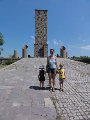Asi pět kilometrů od Prištiny se nachází středověká kamenná věž. Památník Gazimestan připomíná bitvu na Kosově poli, jež se zde odehrála roku 1389. Na kdysi českým kontingentem ostře střeženou 25 m vysokou věž vede sto schodů a z vrcholku je vidět na místo, kde se bitva mezi srbskými a tureckými vojsky odehrála. V roce 1953 zde byl vybudován památník jako projev úcty srbskému národu. Dnes vstup do věže střeží dvojice policistů: jeden Srb a jeden Albánec. Zapsali si z pasu naše iniciály do ohromné knihy a pak nás vpustili do objektu památníku. Rozhled je opravdu velkolepý - a dojem udělá zejména pohled na dvě mohutně čoudící tepelné elektrárny Kosovo A a Kosovo B. Tyto dvě elektrárny pokryjí 98% veškeré spotřeby elektrické energie v zemi. Elektrárny silně zamořují svými zplodinami nejbližší okolí, překračují všechny možné emisní limity, ale ještě nejmíň pět let prý takto čudit budou, než se postaví nové Kosovo C.