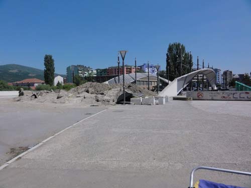 Kousek před městem Kuršumlija míjíme zajímavou stavbu - v roce 1986 se tu začala stavět přehrada. Údolí je vybydlené, hráz vystavěná - ale přehrada nikdy nebyla napuštěna. Cedule informující o staviteli a investorovi je už notně prorezavělá.