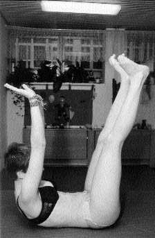Leh na zádech, horní končetiny podél těla, hlava v prodloužení páteře, dolní končetiny se opírají ploskami o podložku. Nádech nosem na 4 doby, při výdechu na 6 dob, vypneme kolena tak, aby plosky nohou směřovaly kolmo ke stropu.