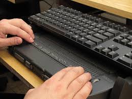 ségra to neposlouchá, má připojené takové zařízení, kde jí jede text v braillu