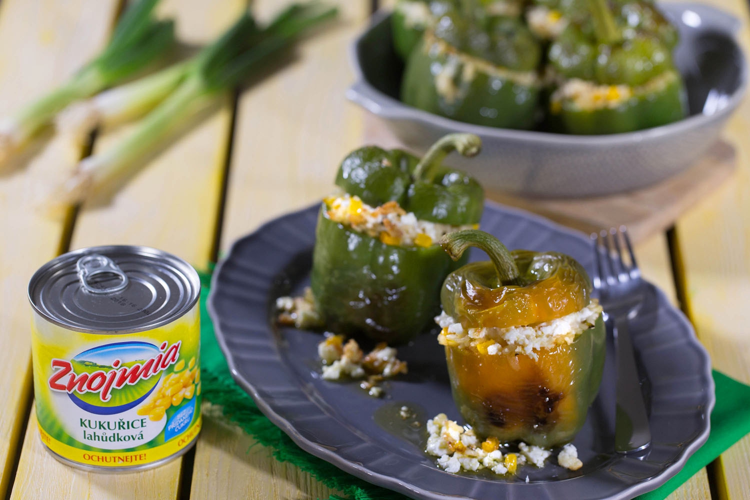 | Suroviny: | 6 zelených paprik • 100 ml bílého vína • 2 jarní cibulky • 1 litr kuřecího vývaru • 2 lžíce extra panenského olivového oleje Vasco da Gama • stroužek česneku • 2 hrnky rýže arborio • 150 g čedaru • 100 g fety • lahůdková kukuřice Znojmia • pepř a sůl dle chuti • |